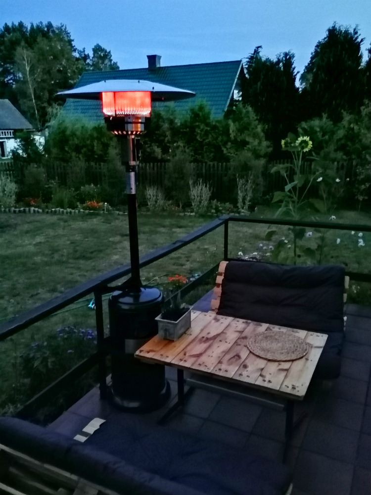 Gazowy parasol grzewczy na tarasie, fot. Ogrodosfera.pl